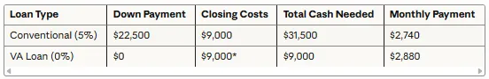 What does this mean in practical terms? If you're an E-7 with 15 years of service or an O-3, your veteran buying power is stronger than you might think. The 0% down payment benefit means your entire house payment goes toward building equity from day one, not sitting in an apartment paying your landlord's mortgage.